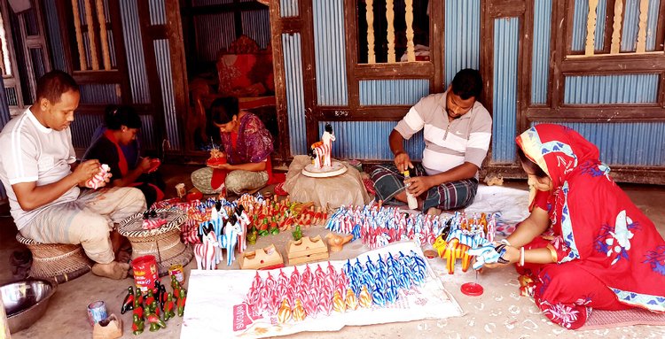 উপজেলার পাইকপাড়া গ্রামের পালপাড়ায় গিয়ে দেখা যায়, ঘরের আঙিনায় নারী-পুরুষ—সবাই ব্যস্ত সময় পার করছে। কেউ মাটি দিয়ে গড়ছেন পুতুল, কেউ বা গড়ছেন হাঁড়ি-পাতিল। রোদে শুকিয়ে, আগুনে পুড়িয়ে নিপুণ তুলির আঁচড়ে রঙিন করা হচ্ছে এসব পণ্য। বৈশাখী মেলায় এসব পণ্য বিক্রি করবে বলে জানান তাঁরা।