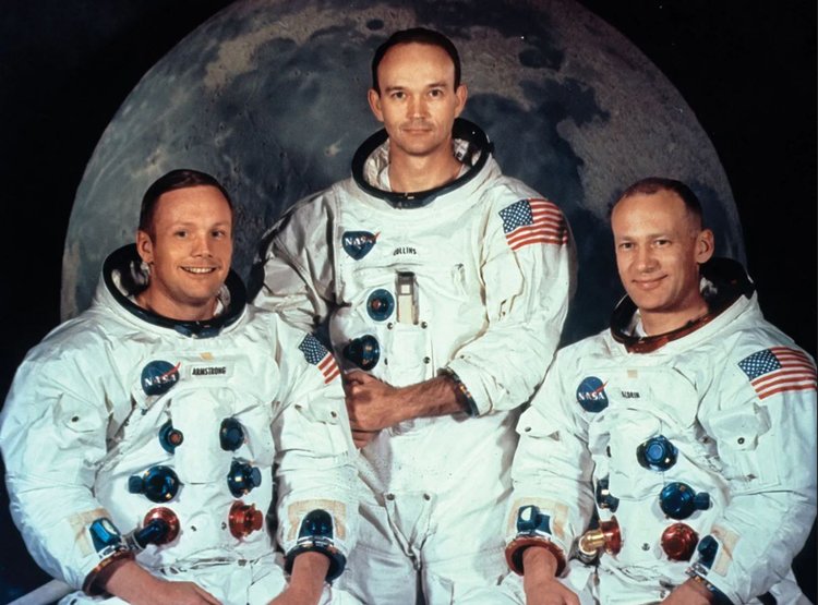 যুক্তরাষ্ট্রের কেনেডি স্পেস সেন্টার থেকে ১৯৬৯ সালের ১৬ জুলাই এই তিন নভোচারীকে বহনকারী মহাকাশযান যাত্রা শুরু করে শূন্যের পথে। চার দিনের টানা যাত্রা শেষে প্রথম মানব হিসেবে চাঁদের বুকে পা রাখেন নীল আর্মস্ট্রং। ১৯ মিনিট পর বাজ অলড্রিন তাঁর সঙ্গে যোগ দেন। মাইকেল কলিন্স তখন কমান্ড মডিউল কলাম্বিয়ায় বসে চাঁদকে প্রদক্ষিণ করছেন।